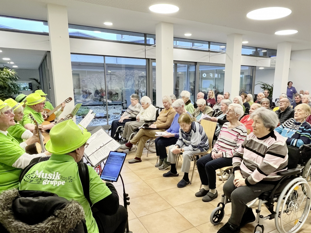 Alle Wohnbereiche des Altenzentrums waren eingeladen, und die Resonanz war wie jedes Mal groß. Die Bewohner freuen sich schon auf den nächsten Besuch des Schwäbischen Albvereins, der mit seinen musikalischen Darbietungen immer wieder Lichtblicke in den Alltag bringt.