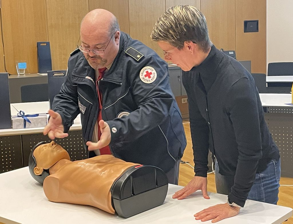Den Blutspenderinnen und Blutspendern, die am Ehrungsabend verhindert waren, werden die Ehrungsgaben nachgereicht. Der Dank des Oberbürgermeisters galt aber auch dem DRK-Ortsverein, der die Blutspendeaktionen zusammen mit dem mobilen Blutspendedienst in der Stadthalle fünf Mal im Jahr vorbildlich organisiert. Das sei ein Kraftakt, betonte das Stadtoberhaupt. „In Eislingen sind die Blutspende-Termine grundsätzlich gut besucht“, freute sich Thomas Ruckh. Dennoch bräuchte es noch deutlich mehr Spenden, um die Versorgung mit Blutpräparaten langfristig zu sichern. Das Online-Buchungssystem für die Blutspendeaktionen hat sich bewährt, denn dadurch verkürze sich die Wartezeit. Leider gibt es immer noch Menschen, die ihren gebuchten Termin nicht wahrnehmen und sich auch nicht abmelden. In diesem Fall würde er sich wünschen, dass der Termin unbedingt wieder storniert werde, um anderen die Chance auf einen Wunschtermin zu geben. Im Anschluss an den formellen Teil der Ehrung wurde es gesellig und kulinarisch. Mit einem Imbiss, mit Filmbeiträgen zur Verwendung des Spenderbluts und der Demonstration einer Reanimation an einer Übungspuppe gestalteten der DRK-Vorsitzende, Thomas Ruckh und Bereitschaftsleiter Rüdiger Trautmann ein interessantes und unterhaltsames Rahmenprogramm.
