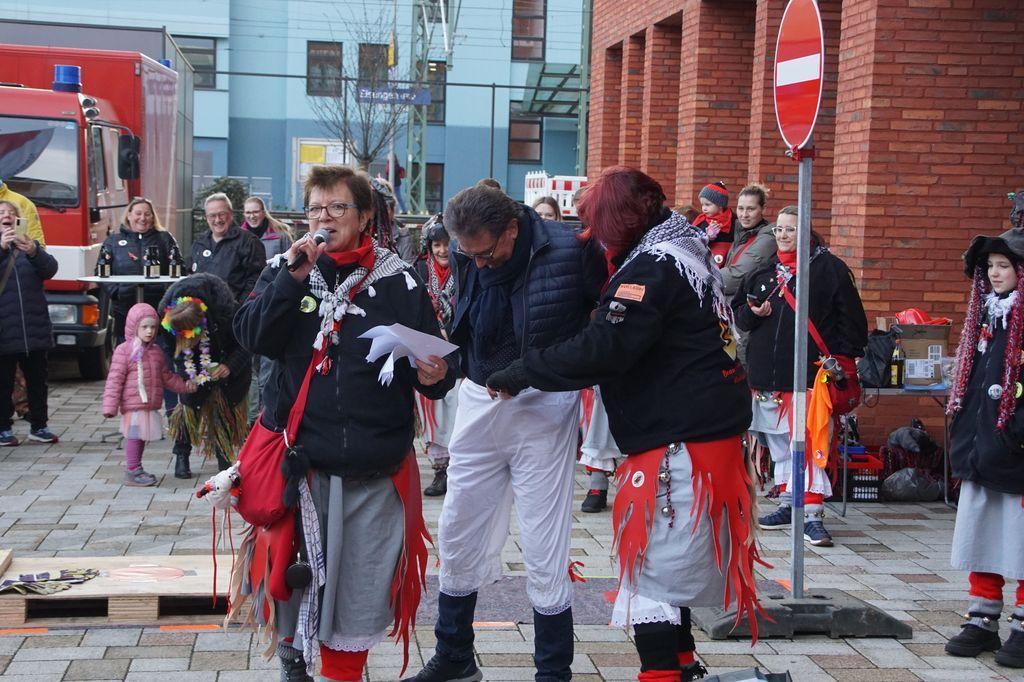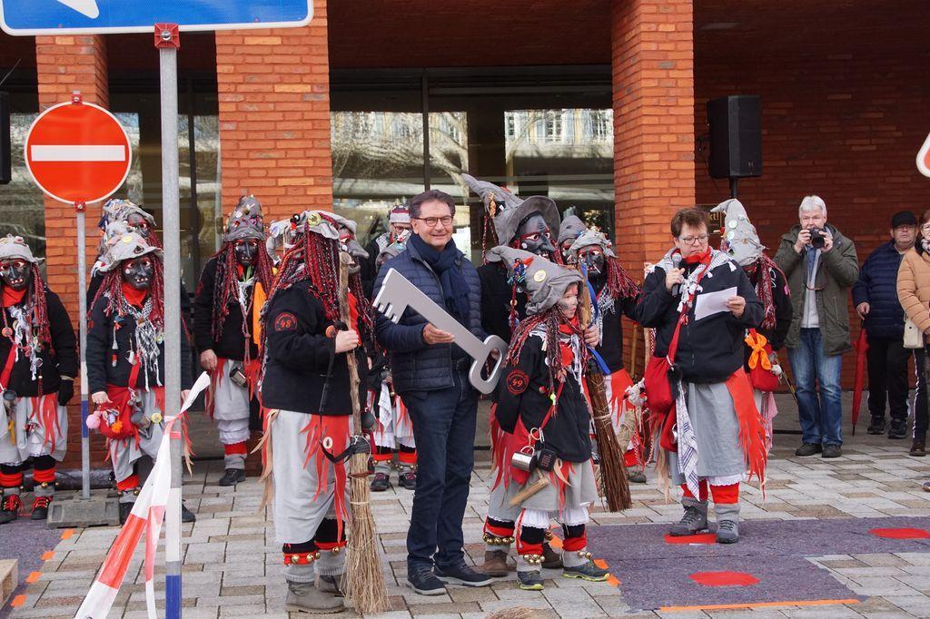 Bereits zum 14ten Mal musste sich Oberbürgermeister Klaus Heininger der Übermacht der Brandstifterhexa geschlagen geben und den Rathausschlüssel der Oberhexe Gaby aushändigen.