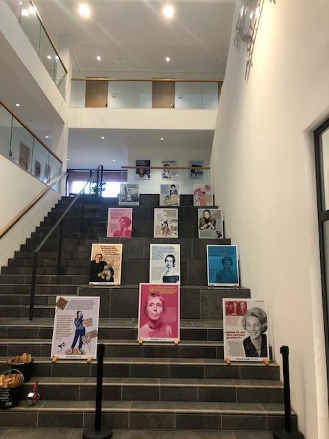 Die eigens aus München angereiste Kuratorin Celine Edinger von „Ausstellung Leihen“ ließ in ihrer Einführung einige Frauen lebendig werden wie z.B. Rosa Luxemburg (1871-1919) Politikerin, Elisabeth Schwarzhaupt (1901-1986) erste Bundesministerin der BRD, , Annemarie Renger (1919-2008) erste Bundestagspräsidentin, Marlene Dietrich (1901-1992) Hollywood-Schauspielerin, Dunja Hayali (1974) Journalistin, Hannah Arendt (1906-1975) politische Theoretikerin und Publizistin, Sophie Scholl (1921-1943) NS-Widerstandskämpferin.