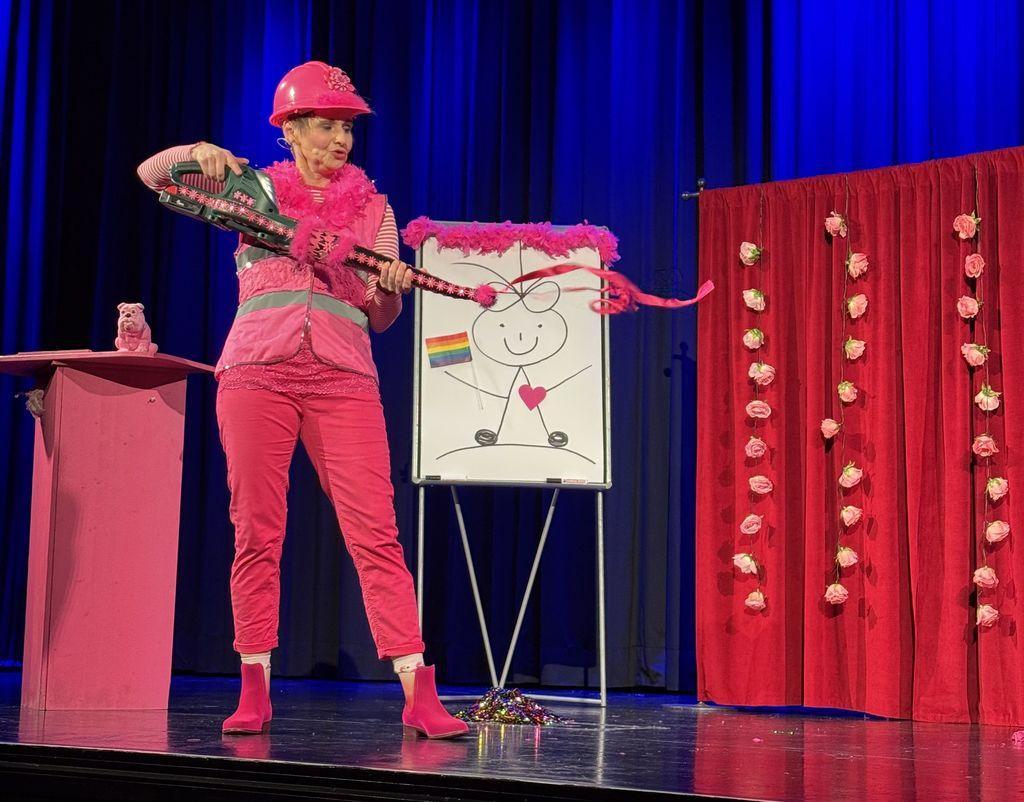 Der Auftritt der Kabarettistin war witzig, klug, kreativ, nachdenklich und unterhaltsam. Ein spontan von ihr während der Vorstellung gezeichnetes Kunstwerk wurde noch im Laufe der Vorstellung zu Gunsten des Göppinger Frauenhauses ersteigert. Ulrike Haas bekam den Zuschlag.