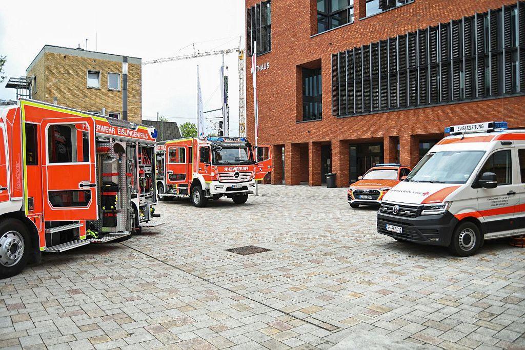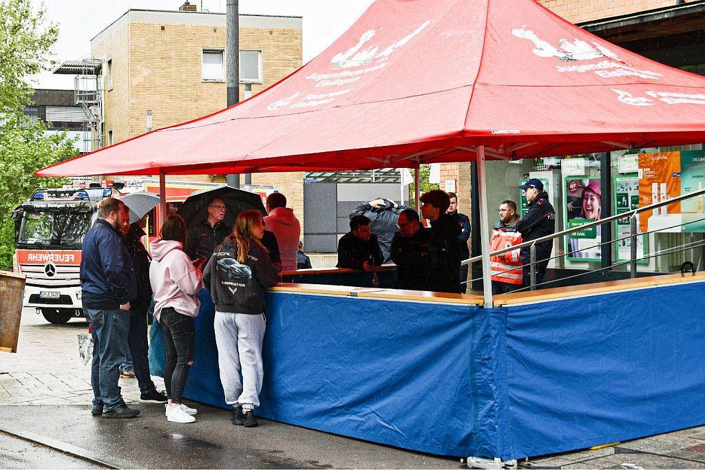 Die Feuerwehr präsentierte nicht nur ihre Einsatzfahrzeuge auf dem Rathausvorplatz, sondern betreute auch einen gut besuchten Getränkestand.