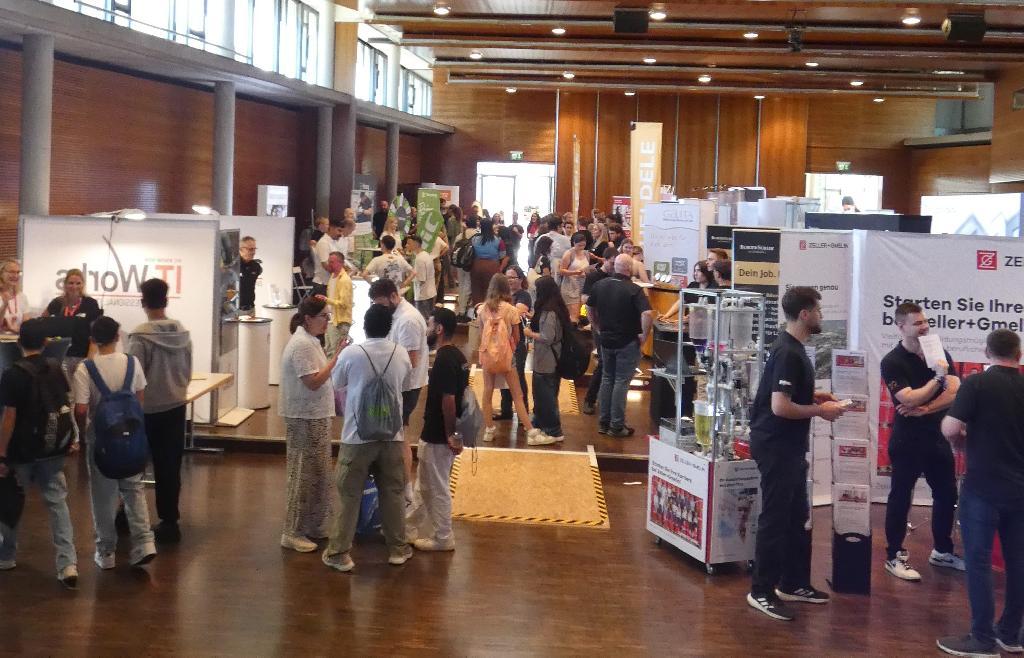 Eislinger Schülerinnen und Schüler, die in den kommenden zwei Jahren ihren Schulabschluss absolvieren, sowie Interessierte von anderen Schulen konnten sich über die Möglichkeiten verschiedener Ausbildungsberufe, (dualer) Studiengänge, Freiwilligendienste und den weiteren Schulbesuch informieren. 40 Ausstellende aus den unterschiedlichsten Branchen boten ein breites Angebot an kaufmännischen, medizinischen, sozialen und technischen Berufen sowie Angebote zur weiteren Schullaufbahn. Bei heißen Außentemperaturen freuten sich die Schülerinnen und Schüler über das vielfältige Angebot in der klimatisierten Stadthalle. Es herrschte ein reger Austausch an den einzelnen Ständen und einzelne Grüppchen waren immer wieder zur Nachbesprechung ihrer Eindrücke im Bistrobereich anzutreffen.