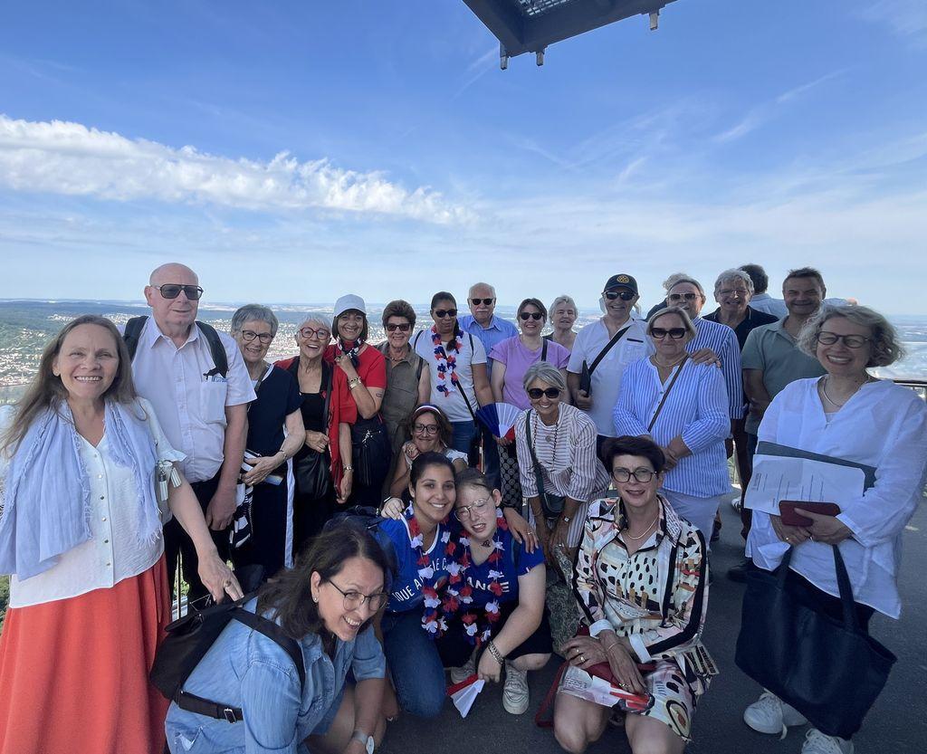 Für seine Worte zum europäischen Zusammenhalt erhielt er viel Beifall von den Gästen. Als Zeichen der Verbundenheit überreichte Francoise Collet, die Vorsitzende des französischen Partnerschaftskomitees, eine Bildercollage aus Oyonnax. Ein Highlight für die französischen Gäste war der traditionelle Fassanstich im Schlosspark und der Auftritt der mitreißenden Live-Band am späten Abend, die bei Gästen wie Gastgebern für ausgelassene Stimmung sorgte und zu flotten Tanzeinlagen animierte. Auch beim großen Festumzug am Sonntag durch die Eislinger Innenstadt setzten die Gäste aus Oyonnax ein farbenfrohes Zeichen. Mit Sonnenschirmen und Fähnchen in den Nationalfarben blau, weiß und rot waren sie ein echter Blickfang. Rund um das Stadtfest erwartete die Delegation ein abwechslungsreiches und interessantes Rahmenprogramm. Bei strahlend blauem Himmel bot der Ausflug auf den Stuttgarter Fernsehturm einen weiten Blick über die Region. Eine faszinierende und ganz andere Perspektive eröffnete die spannende Führung durch das Museum „Kages Mikroversum“ im Schloss Weißenstein. Die Ausstellung entführte die Gäste in mikroskopisch kleine Welten voller Kristalle, Mikroben und Meereswesen – ein Erlebnis, das bei vielen einen bleibenden Eindruck hinterließ. Das Herzstück der Städtepartnerschaft ist und bleibt jedoch seit über zwei Jahrzehnen die private Unterbringung der Gäste, die die Verbindung mit Leben füllen. Viele Freundschaften, die bei früheren Besuchen entstanden sind, wurden weiter gepflegt – andere haben sich in diesem Jahr ganz neu angebahnt. Beim gemeinsamen Abschlussabend im Landgasthof „Linde“ unterhalb von Schloss Weißenstein kamen alle Beteiligten noch einmal zusammen. Es wurde gelacht, erzählt und auf ein rundum gelungenes Wochenende angestoßen, bevor es am Sonntagmorgen hieß: Au revoir – bis zum nächsten Wiedersehen. Leider konnte in diesem Jahr keine Delegation aus der ungarischen Partnerstadt Villány am Stadtfest teilnehmen. Der Grund: Bürgermeister Istvan Mayer hatte zeitgleich Gäste aus der österreichischen Partnerstadt zu Besuch.