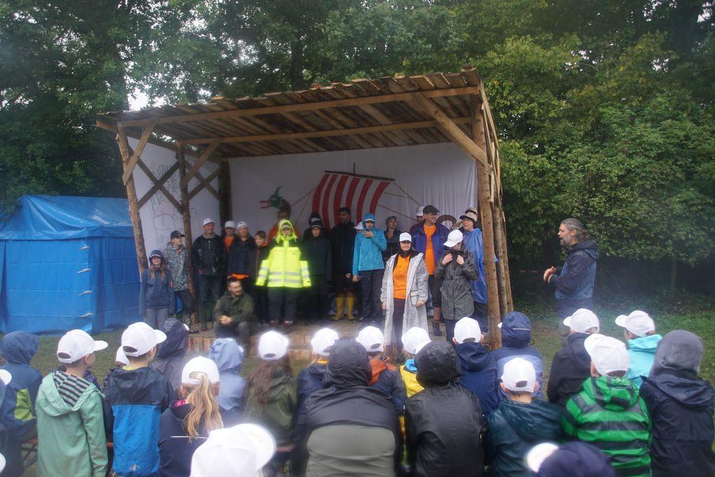 Auch wenn dunkle Wolken über dem WaWuWo-Gelände hingen und Regen immer wieder einsetzte, tat das der Stimmung keinen Abbruch. Lachen, Musik und das Hämmern des traditionelle Hüttenbau hallten durch den Wald. Die kleinen Teilnehmer zeigten sich wetterfest – Gummistiefel und Regenjacken machten das Abenteuer perfekt.