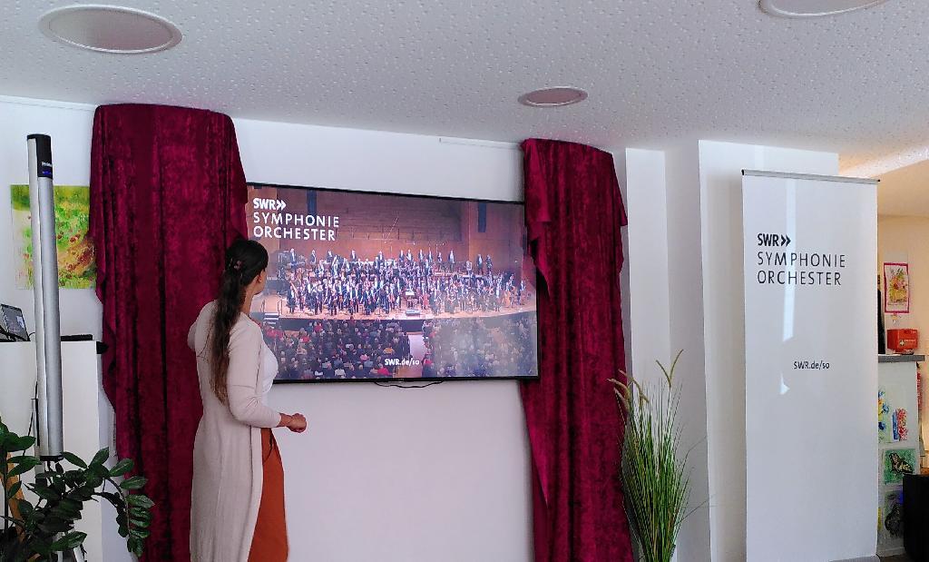 Das Publikum kam nicht nur in den Genuss live gespielter Musikstücke, sondern auch eines besonderen Konzerteinblicks: Gezeigt wurde ein Ausschnitt aus einem Orchesterkonzert – allerdings mit Perspektiven, wie man sie im Konzertsaal nie erleben würde. Plötzlich saß man quasi mitten zwischen den Bratschen und hatte beste Sicht auf das Taktstockballett des Dirigenten.