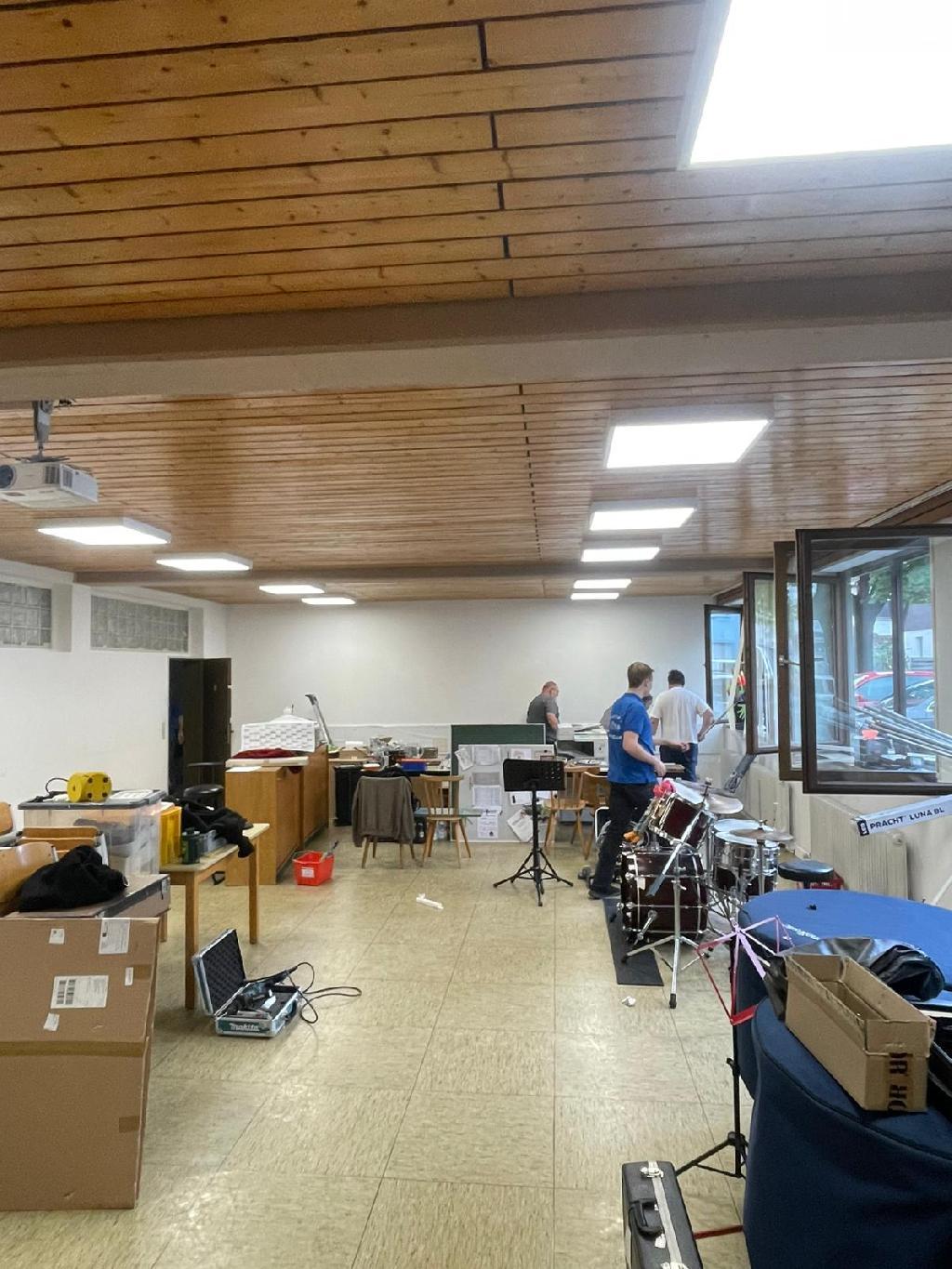 „Der alte Muff musste raus“, hieß es entschlossen – und mit ihm auch die letzten Spinnweben der 90er. Denn wo Musik erklingen soll, braucht es frische Luft, klare Linien und ein bisschen Glanz auf dem Boden. Neben dem Musikzugausschuss, dem leitenden Gremium der musikalischen Abteilung, packten auch weitere Mitglieder kräftig mit an. Ob mit Schraubenzieher oder Staubwedel – Teamgeist war das Instrument des Tages.