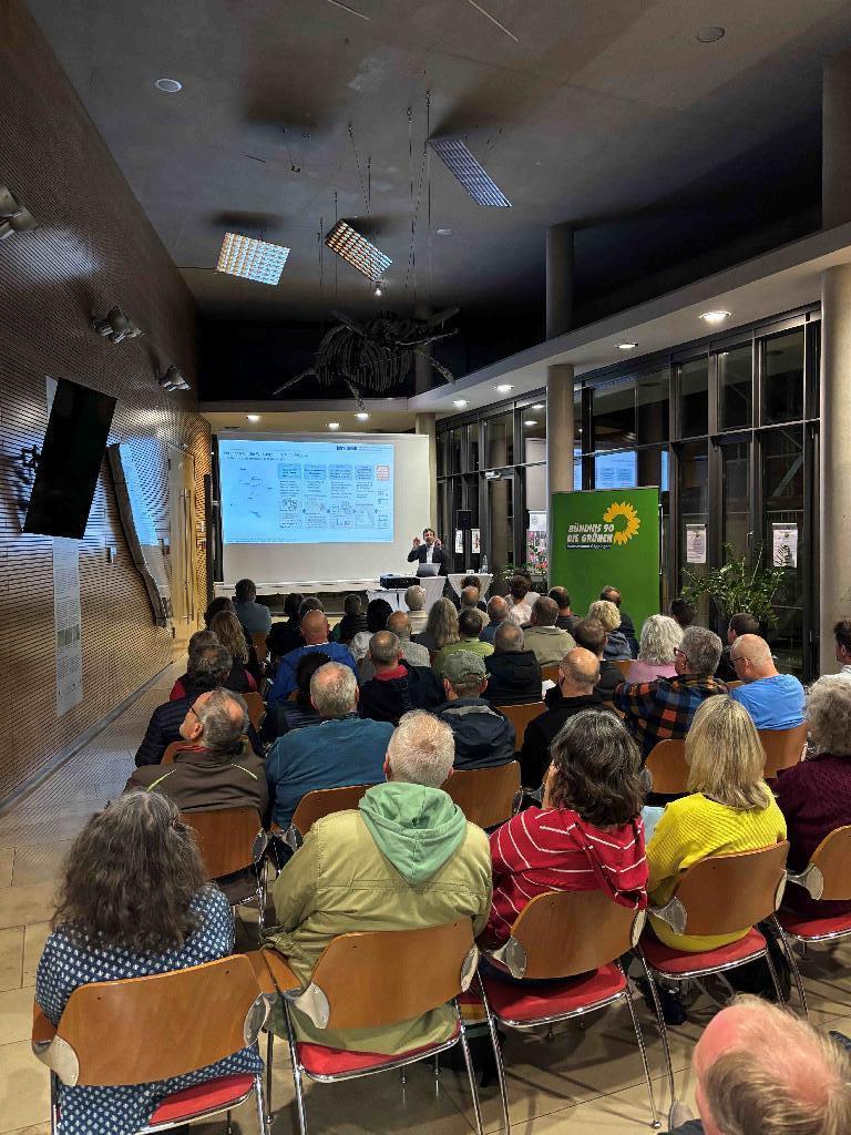 Die Eislinger Grünen haben eingeladen zum Thema Hochwasserschutz und viele kamen in das kleine Foyer der Stadthalle, darunter zahlreiche Betroffene des Hochwassers vom letzten Jahr. Auch die grüne Landtagskandidatin Dr. Mariska Ott und die Bürgermeisterin aus Römerstein Anja Sauer waren unter den Gästen.