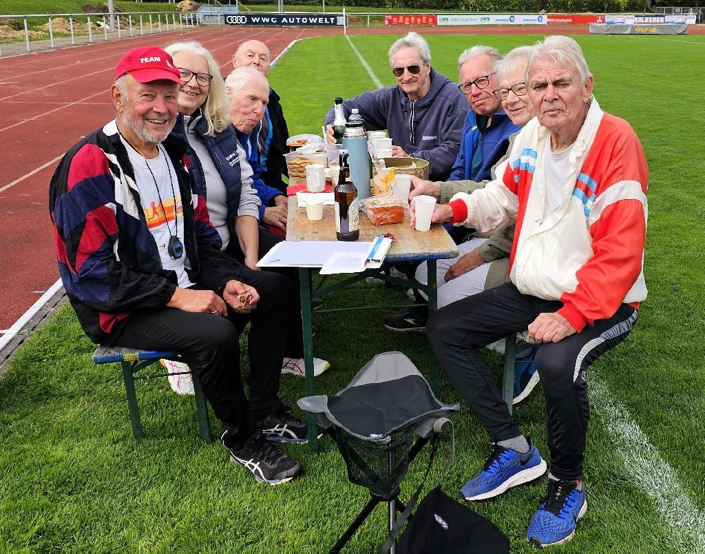 Die Sportabzeichensaison 2025 ging gestern zu Ende. Dank dem großartigem Einsatz des Teams war es zahlenmäßig ein Rekordjahr. 70 Sportabzeichen werden am 28. November im Vereinsheim des ASV Eislingen verliehen. Ein Drittel davon geht auf die Masterarbeit von Elisabeth „Lissy“ Frey. Seit 1995 als Fritz Ecker und Franz Rink das Erbe von Rudolf Lechner übernahmen, kam man im Durchschnitt auf rund 40 Abzeichen im Jahr. Vom Tiefpunkt im Jahre 2008 mit 27 Sportabzeichen zeigt die Kurve stetig steil nach oben. Ergo, eitel Sonnenschein ? im Grunde genommen, ein klares Ja. Aber der „harte Kern“ kommt in die Jahre. Seit 45 Jahren fährt Co-Trainer Willi Miller von Ebersbach rund 20 mal/Jahr nach Eislingen. Sumasumarum sind das 36.000 Kilometer. Mit 45 Sportabzeichen liegt Willi in der ewigen Bestenliste gleichauf mit Winfried Endress auf Rang zwei. Der „dienstälteste Prüfer“ Fritz Ecker wird heuer für 40 Wiederhohlungen in Gold geehrt. Rolf Grötzinger und Rudi Zwicker haben diese Zahl bereits überschritten und Übungsleiter und Prüfer Franz Rink steht mit 47 Wiederhohlungen ganz oben. Gemütlicher „Hock“ beim Finale. Die „glorreichen Sieben“ mit Christiane Die Saison 2026 beginnt am 4. (Ostersamstag) oder am 11. April. |