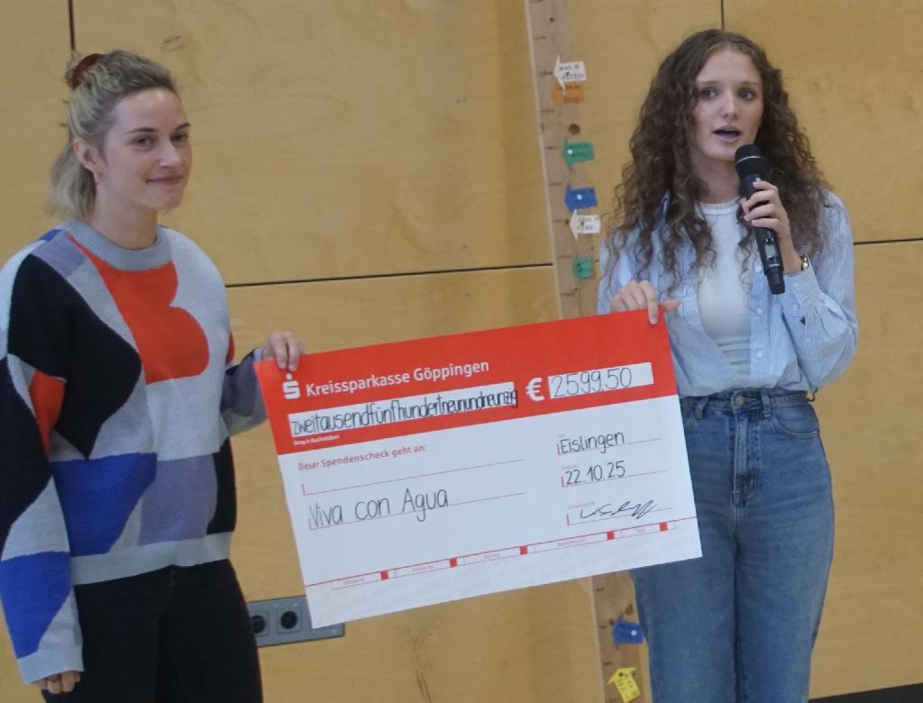 Ein starkes Zeichen für Solidarität und soziales Engagement: Die amtierende Schulsprecherin der Silcherschule, Elsa Musliu, hat im Rahmen der Aktion Ehrensache einen Scheck über 2.600 Euro an die gemeinnützige Organisation Viva con Agua überreicht.