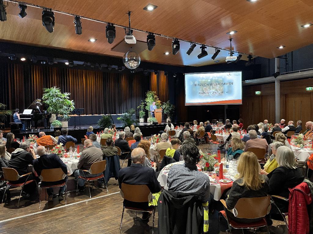 Schwungvoll und feierlich umrahmten Musikerinnen und Musiker der Städtischen Musikschule unter Leitung von Daniel Rehfeldt den Abend. Zum Ausklang genossen die Gäste gesellige Gespräche bei einem Drei-Gänge-Menü.