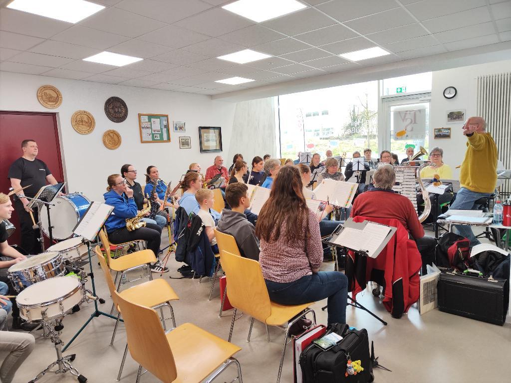 Geprobt wurde alles, was gute Laune macht: traditionelle Märsche, aber auch moderne Klassiker wie „Du hast den Farbfilm vergessen“, „I’m a Believer“ oder „The Bare Necessities“. Mit 40 Musikerinnen und Musikern – je zur Hälfte aus Süßen und Eislingen – war die dreistündige Probe nicht nur gut besucht, sondern auch gut gelaunt.