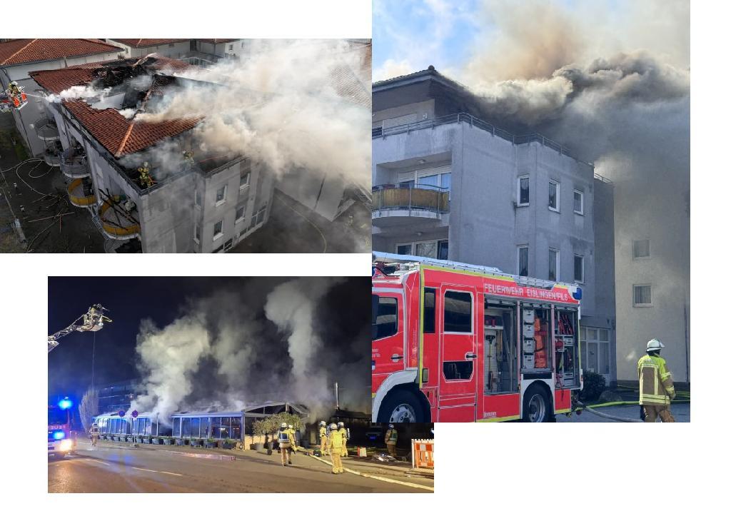 Hoher Sachschaden aber keine Verletzte bei Großbrand in Wohn- und Geschäftsgebäude und bei Feuer in Pizzeria