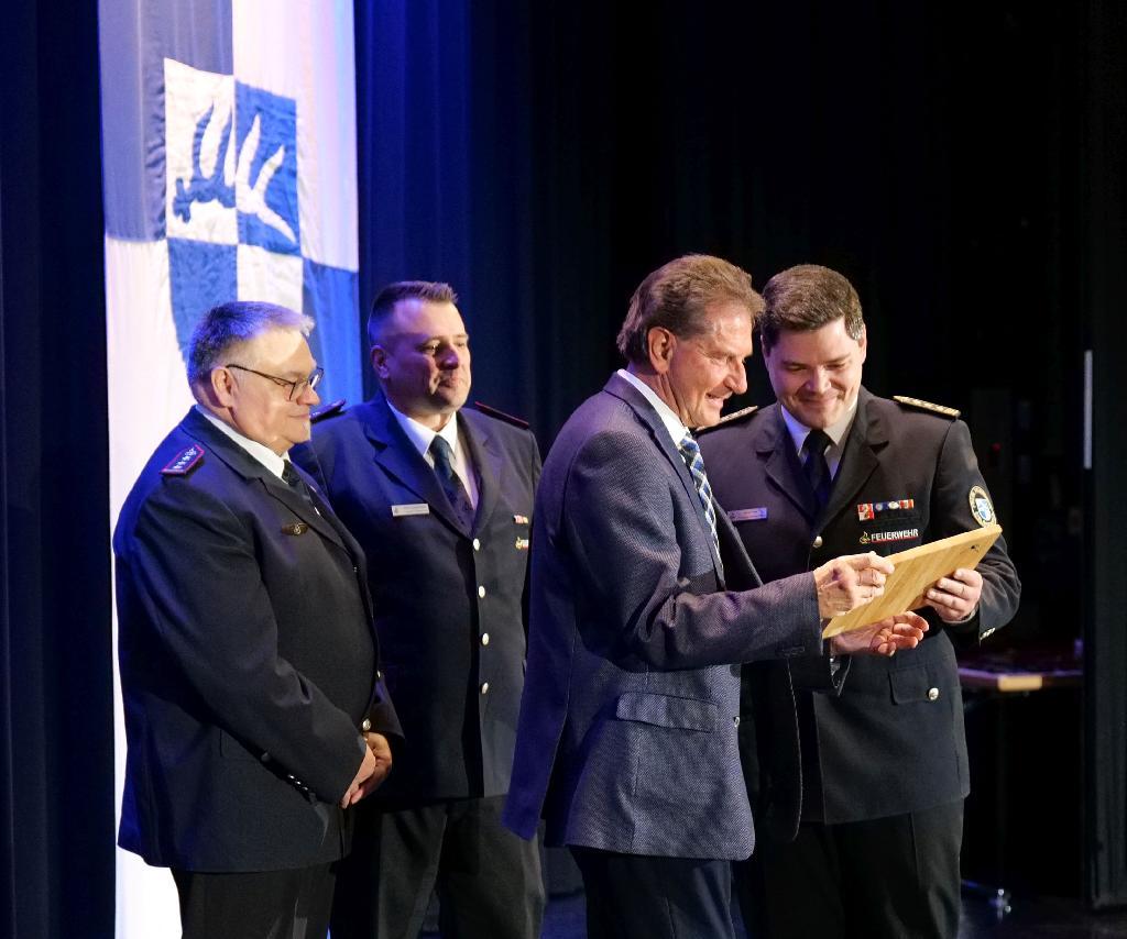 Er dankte ausdrücklich allen Feuerwehrkräften für den ehrenamtlichen Dienst in der Bürgerschaft und die harmonische Zusammenarbeit in seiner 16-jährigen Amtszeit: „Die Stadt ist unheimlich stolz auf ihre Feuerwehr. Sie ist sehr gut aufgestellt, bürgernah und gewappnet für die Herausforderungen in der Zukunft.“ Feuerwehrkommandant Feller würdigte die Zusammenarbeit mit klaren Worten: „Die Feuerwehr Eislingen konnte sich immer auf die stetige und starke Rückendeckung aus dem Rathaus verlassen.“ Zum Dank hierfür überreichte die Feuerwehr dem Schultes einen Geschenkkorb sowie eine Holztafel zur Erinnerung. In seinem Bericht zeichnete Kommandant Feller ein klares Bild eines fordernden Jahres. Insgesamt 189 Einsätze bewältigte die Feuerwehr im vergangenen Jahr, das Einsatzspektrum reichte vom Großbrand bis zur komplexen technischen Hilfeleistung. Besonders eindrücklich schilderte Kommandant Feller einen tragischen Unfall, bei dem eine Person an der Einsatzstelle verstarb. „Solche Einsätze gehen an niemandem spurlos vorbei.“ Insgesamt konnten 13 Personen aus lebensbedrohlichen Situationen gerettet werden. Zentrale Themen bei der Feuerwehr bleiben die Nachwuchsgewinnung und der Umgang mit dem demografischen Wandel. Zum Stichtag 31.12.2025 engagierten sich 99 Feuerwehrangehörige in der Einsatzabteilung. Die Jugendfeuerwehr zählte 30 Mitglieder und die Altersabteilung 12. Parallel zur Stärkung der Einsatzabteilung arbeitet die Feuerwehr an der strategischen Weiterentwicklung – unter anderem in den Bereichen Großschadenslagen, Bevölkerungsschutz sowie an standardisierten Einsatzkonzepten. Im vergangenen Jahr wurde die Atemschutzübungsanlage des Landkreises Göppingen, die bei der Feuerwehr Eislingen betrieben wird, grundlegend modernisiert. Über 1.000 Atemschutzgeräteträger trainieren dort pro Jahr. Die Stadtverwaltung investiert jedes Jahr in den Fortschritt der Technik und die Aus- und Fortbildung der Einsatzkräfte: 61 Feuerwehrleute besuchten im letzten Jahr verschiedenste Lehrgänge.