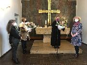 |  Zwei Jubilarinnen im KiFaZ der Christuskirche Eislingen-Ottenbach 40 Jahre im KiFaZ: Brigitte Gölz und Susanne Kühner 06.4.2022 - Christuskirche Am vergangenen Sonntag war ein sehr erfreulicher Anlass im Anschluss an den Gottesdienst in der Christuskirche zu feiern: